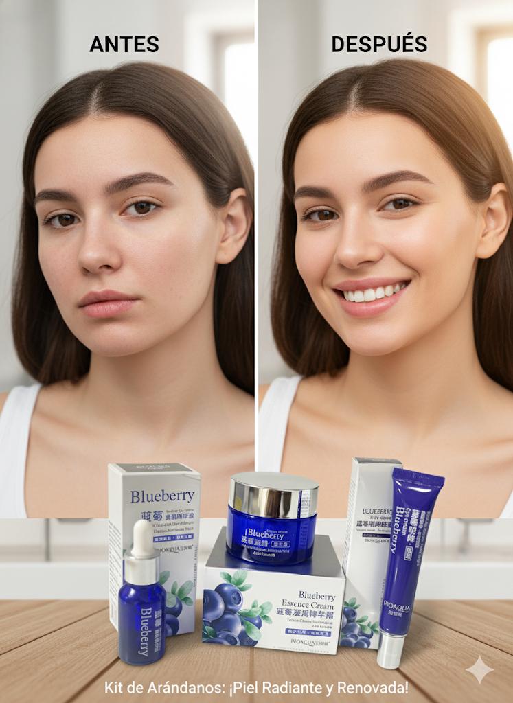 Con nuestro maravilloso kit de arandanos vas a lucir una piel mas rejuvenecida, con un brillo natural, reparando imperfecciones causadas por los años.